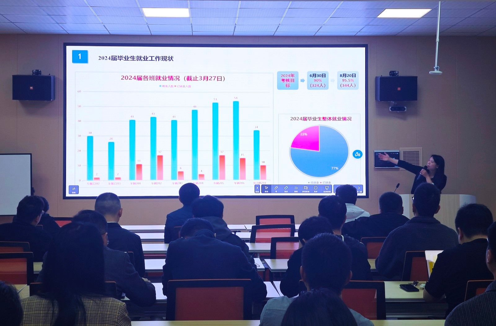 周彬对现阶段的就业形势和就业工作要点进行了分析,指出全院上下务必协同工作,学工和教学形成合力,全员促就业。毕设教师责任到人,班主任及时督促,辅导员加强兜底;挖掘各方资源,持续开展访企拓岗行动,提供就业资讯,积极推荐就业;建立一对一就业帮扶机制,及时了解毕业生就业状态,引导就业观念,拒绝缓就业、慢就业。以“拧成一股绳”的凝聚力,整合全院力量推进就业工作稳步前行。