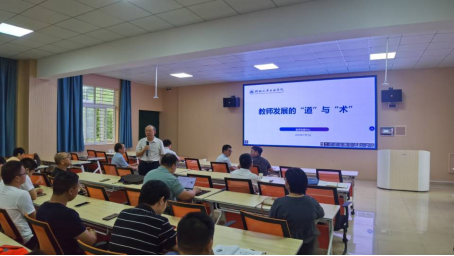 会上,郭一鸣教授首先对汽车工程公司教师发展分中心的成立表示祝贺,并以“教师发展的‘道’与‘术’”为主题做了专题讲座。讲座围绕大学教学的五个层次展开阐述教师发展内涵建设:“1个中心、2个平台、3个周期、4维支撑”,多读书,做好课程思政,努力成长为“五个一”优秀教师。