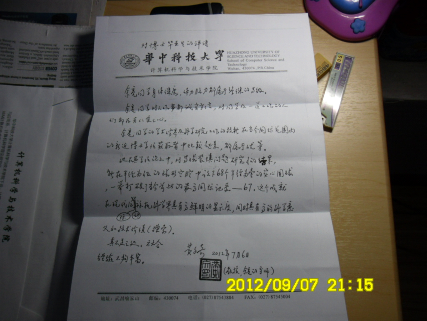 复印件(导师手写原件交给了国家安全中心,第一家录用我的单位)