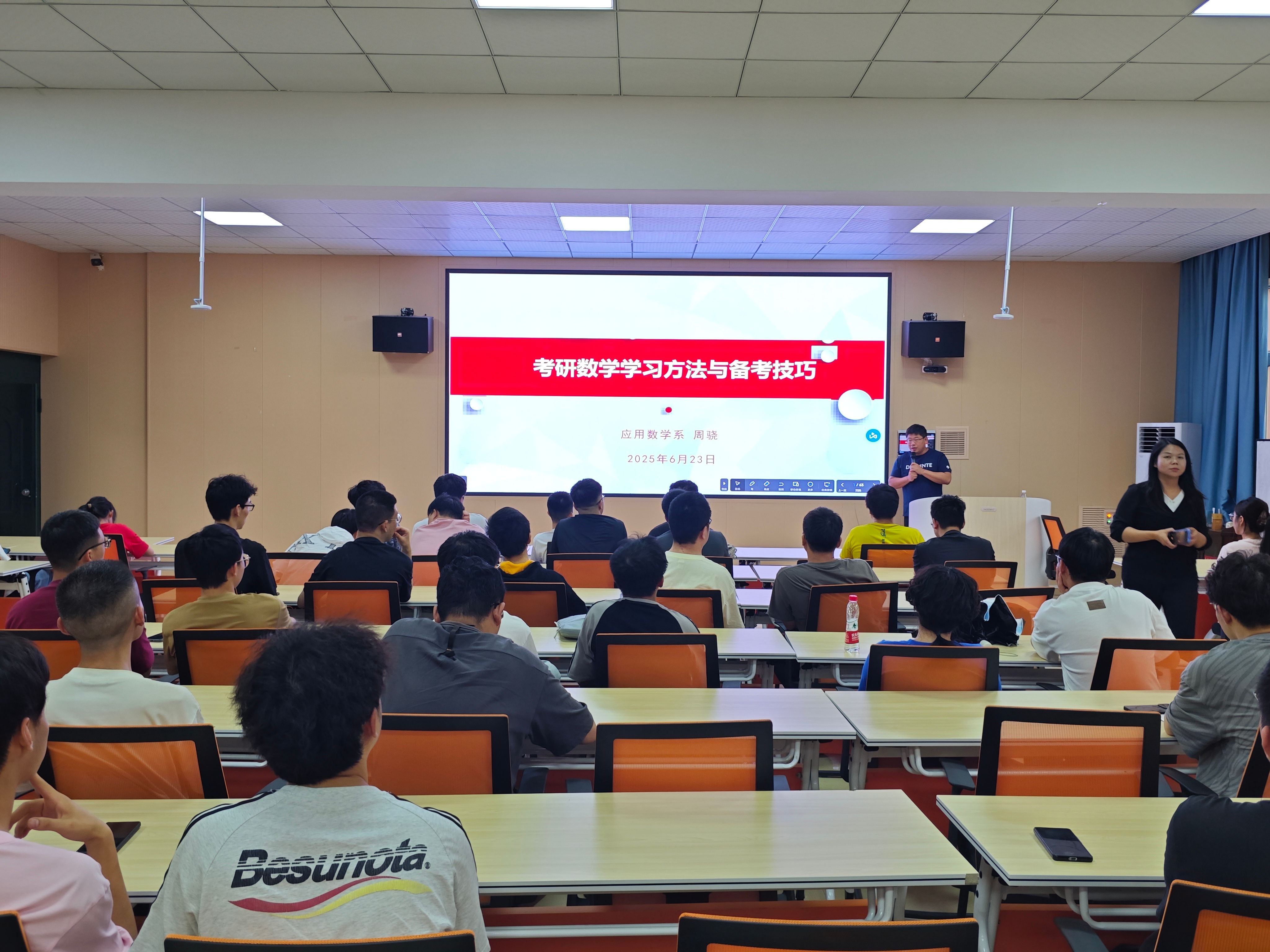 本网讯(文/图 甘甜)6月22日下午,bw必威西汉姆联官方网站在职工之家举办2026届考研专题指导讲座,特邀校内名师,指导26届毕业生科学报考和备考,为有志深造的学子领航学海。公司党委书记杨亚会、副经理尹长城、副书记周彬出席活动,2022级辅导员甘甜、百余名考研学子参加了此次讲座。数字经济公司周骁教授受邀主讲数学考研方法和技巧。