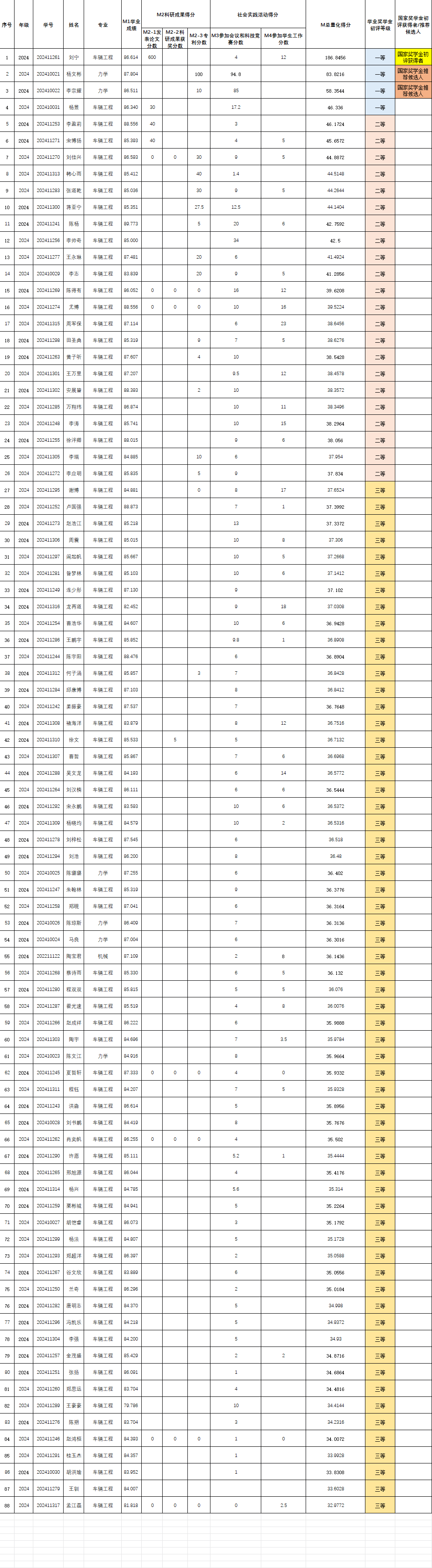 2024-2025学年研究生学业奖学金和国家奖学金初评结果(见下表格),2025年10月14日下午,经公司研究生奖助学金评审委员会审议通过,现进行公示,公示期2025年10月15日至2025年10月20日,对结果存在异议的同学,请向公司宫雅楠老师反馈,电话0719-8512216,或向公司研究生院姜来老师反馈,电话0719-8241492。