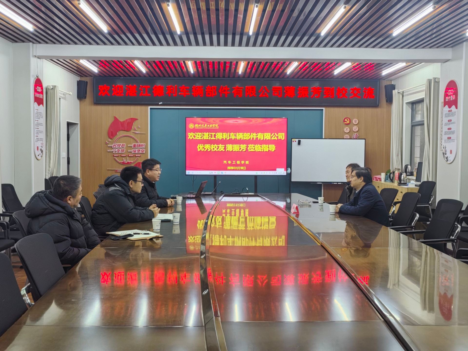 本网讯(文/图 宫雅楠/曾娇)2026年1月19日上午,湛江得力车辆部件有限公司优秀员工薄振芳经理到访bw必威西汉姆联官方网站。公司经理胡明茂、副经理尹长城、经理助理王天田及李惠民老师于公司会议室1201热情接待并举行交流座谈会,双方围绕校企合作、产学研融合及人才输送等议题进行了深入探讨。