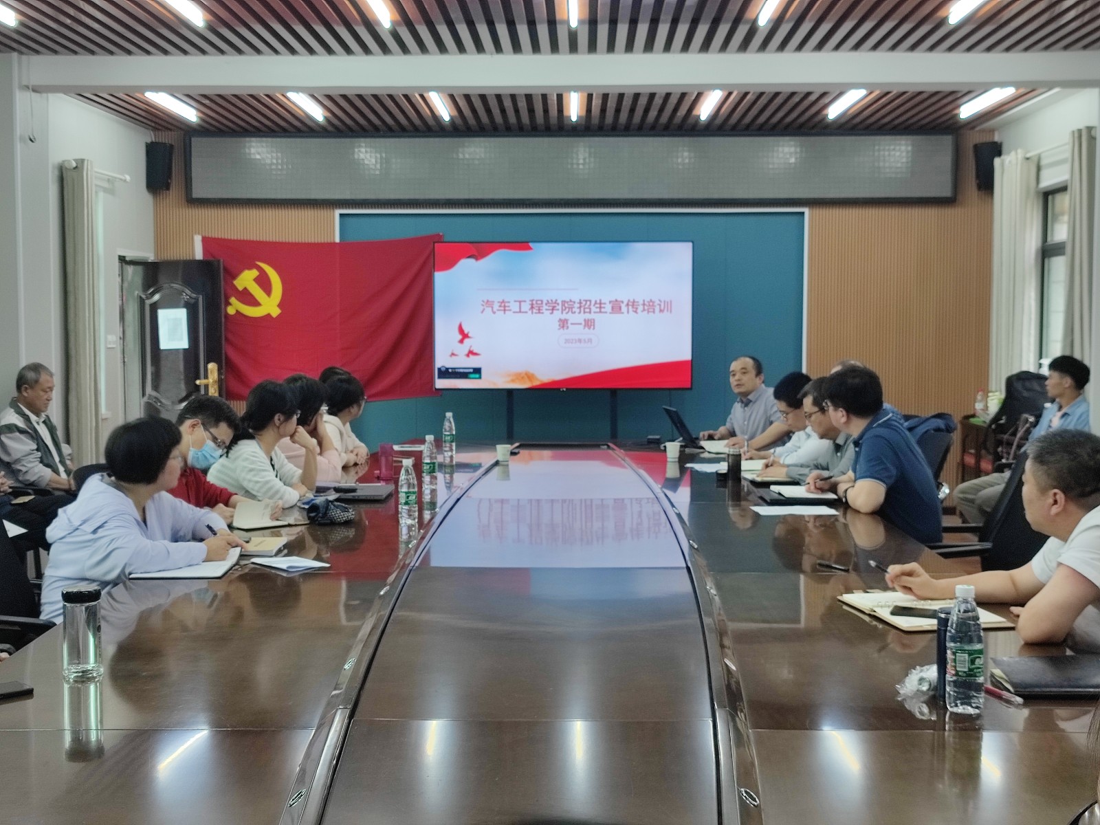 副经理杨正才向大家介绍了2023年的招生计划,就今年首次招生的智能车辆工程专业进行了重点讲解。他介绍了智能车辆工程专业的定位,从团队配置、课程设置和就业方向等方面分析了该专业与车辆工程、新能源汽车工程专业的不同之处。杨正才建议各位老师可结合公司获批“东风HUAT智能汽车产业公司”、公司智能汽车竞赛团队多次在全国比赛中获奖等亮点来积极宣传智能车辆工程专业。