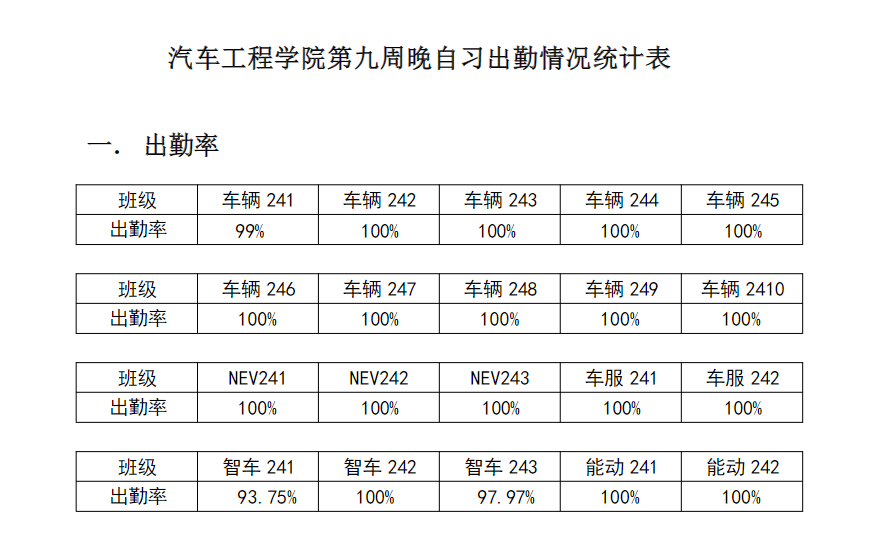 【督学正风】2024-2025学年第二学期第九周晚自习出勤情况