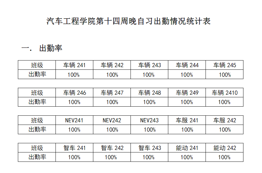 【督学正风】2024-2025学年第二学期第十四周晚自习出勤情况