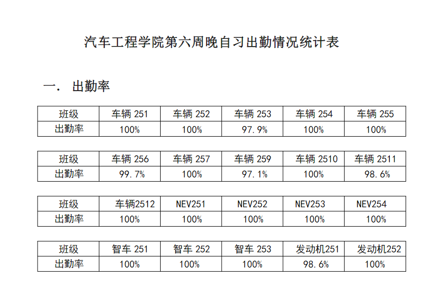 【督学正风】2025-2026学年第一学期第六周晚自习出勤情况