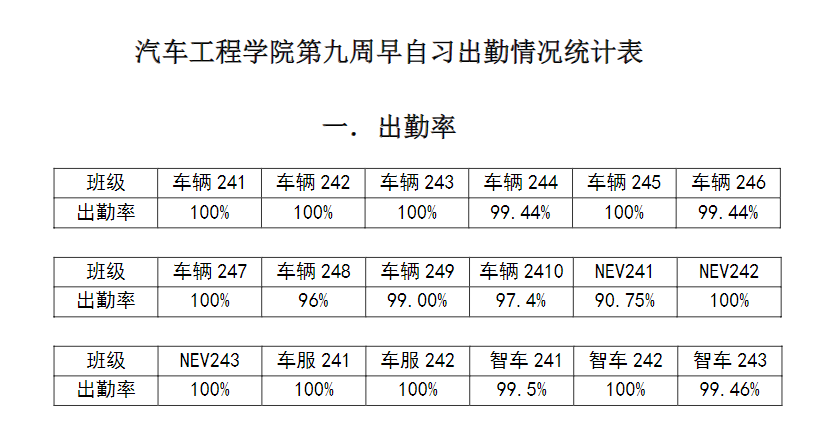 【督学正风】2024-2025学年第一学期第九周早自习出勤情况