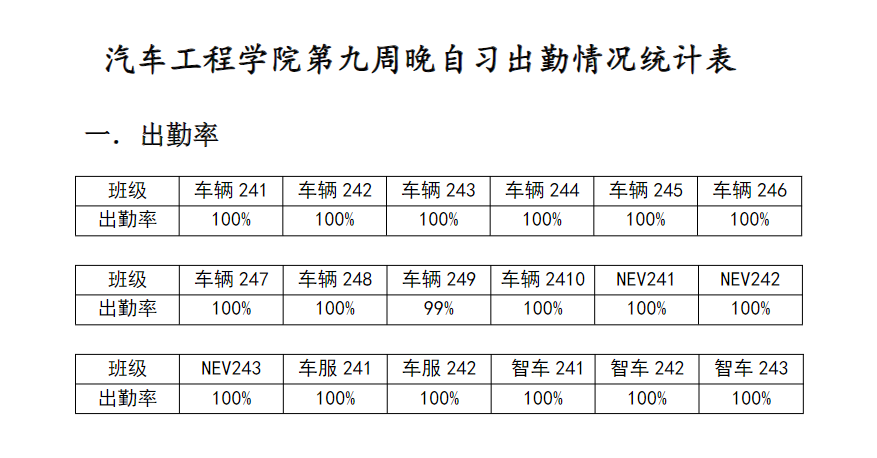 【督学正风】2024-2025学年第一学期第九周晚自习出勤情况