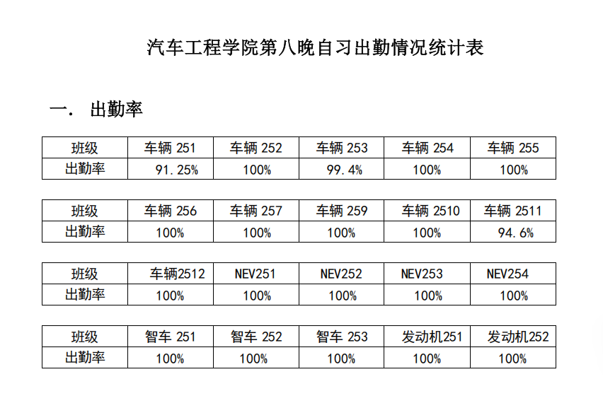 【督学正风】2025-2026学年第一学期第八周晚自习出勤情况